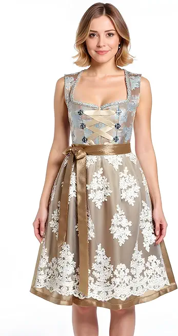 The Authentic Oktoberfest Bavarian Dress (silver-blue, size 10) was perfect for our family trip to Munich. The colors are vibrant, fabric is soft yet sturdy—no itching or discomfort during long days at the beer tents. The fit is true to size—flattering without being tight. Apron and blouse included are well-made. I danced, ate, and celebrated all day—stayed comfortable. Washes well—no fading. Everyone complimented the authentic look. This dirndl made Oktoberfest unforgettable—highly recommend!